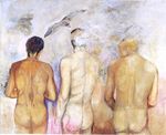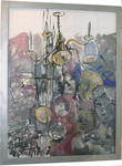 1995Subject: mystiek, wicca,magie, heksenvervolging als symbool. Acrylverf, paardehaar,leer op Belgisch linnen.Aankoop door assurantiekantoor Fimaro, Eindhoven