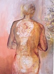 1994Vervreemding, gewaarwording, gevoel temidden mensen. Op papier, met passepartout, in zelf gemaakte houten lijst die behandeld is met zilverwas- in het formaat 90x120