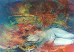 1999Epressief schilderij, geschilderd met acrylverf op linnen. Aangekocht door staatskunstenaar Oscar Guimaraes ( spellingcorrectie is hier niet mogelijk) in Portugal