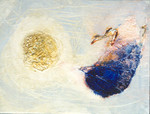 1999Vogels symboliseren gedachten. Acrylverf en textiele materie op linnen