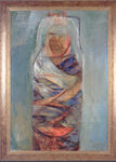 1999Indaling,moedericoon. Acrylverf en pruisisch blauw pigment op linnen. Ingelijst in houten lijst met aluminiumpoeder behandeld over grijsblauwe onderkleur. Gespreide aankoopbetaling mogelijk